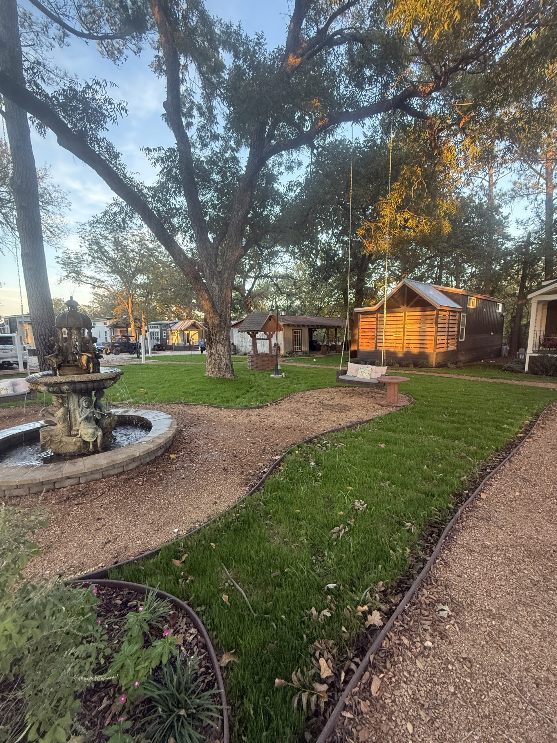 Enjoy listening to the birds singing, soothing water flowing from the fountain in the shade of the large trees